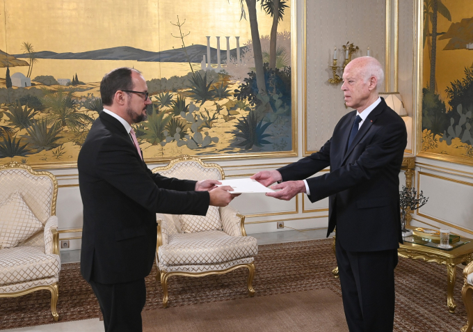 أشرف رئيس الجمهورية قيس سعيّد يوم أمس، 14 من شهر نوفمبر الجاري بقصر قرطاج، على موكب تسلّم خلاله أوراق اعتماد سفراء أجانب جدد بتونس وهم على التوالي: