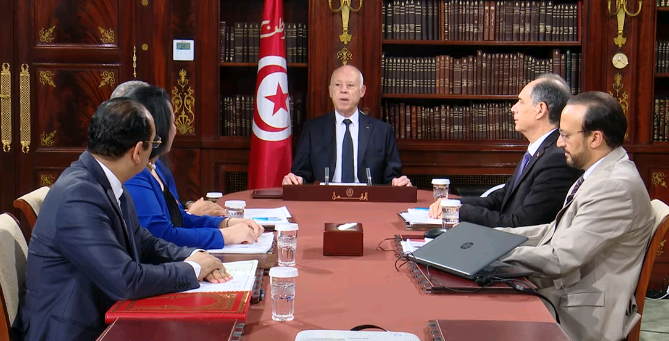 اجتماع رئيس الجمهورية قيس سعيد مع كل من السيدة والسادة محمد علي البوغديري، وزير التربية، والمنصف بوكثير، وزير التعليم العالي والبحث العلمي، ونزار بن ناجي، وزير تكنولوجيات الاتصال، وابراهيم الشائبي، وزير الشؤون الدينية، وأمال بلحاج موسى، وزيرة الأسرة والمرأة والطفولة وكبار السن، حول الاستشارة الوطنية لإصلاح نظام التربية والتعليم.