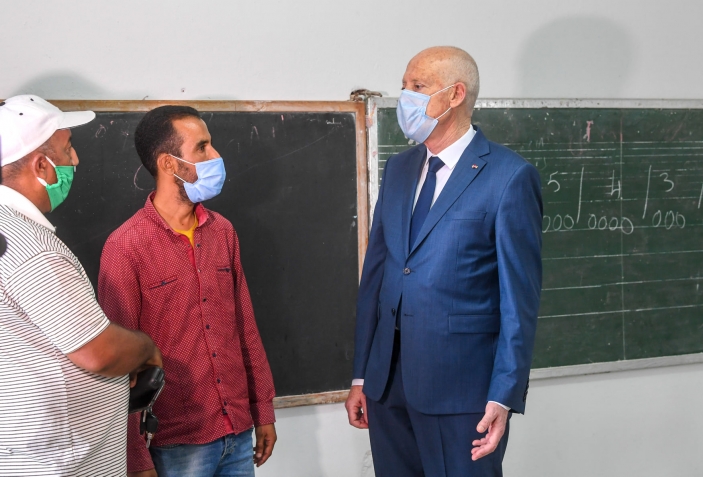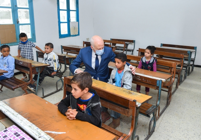 وبهذه المدرسة التي أصبحت تحمل اسم التلميذة "الشهيدة مها القضقاضي" التي توفيت في نوفمبر 2019 بعد أن جرفتها سيول الأمطار، تنقل رئيس الدولة بين مختلف الأقسام متحدثا إلى التلاميذ والإطار التربوي وقد كانت فرصة للاطلاع على عدة إشكاليات تتعلق بنقص عدد المعلمين وانعدام الظروف الصحية اللازمة فضلا عن الظروف الاجتماعية الصعبة للتلاميذ.