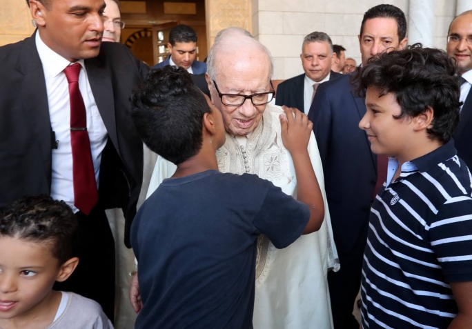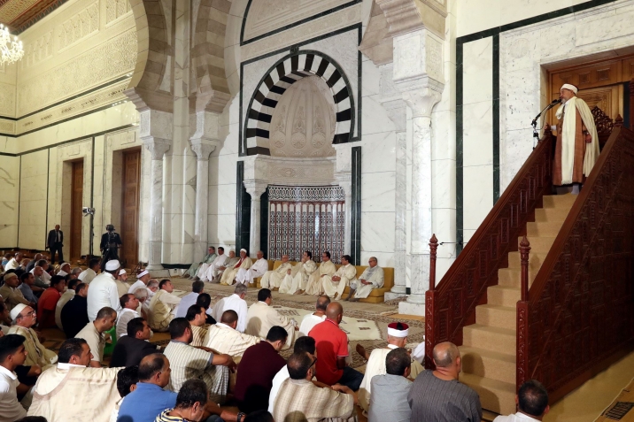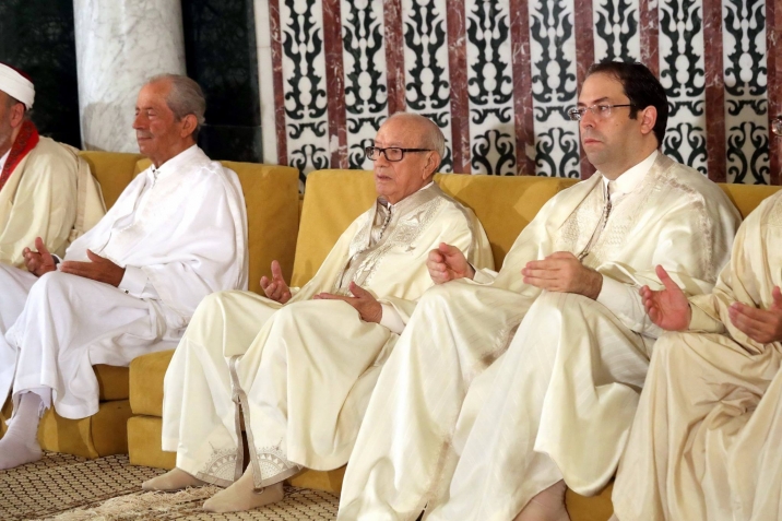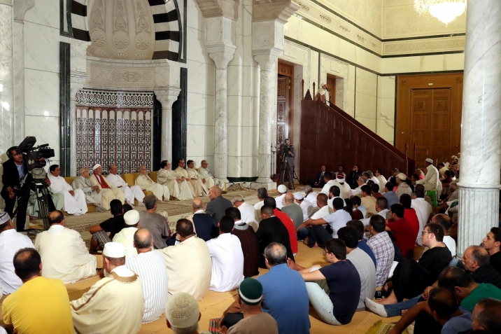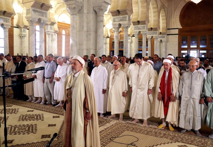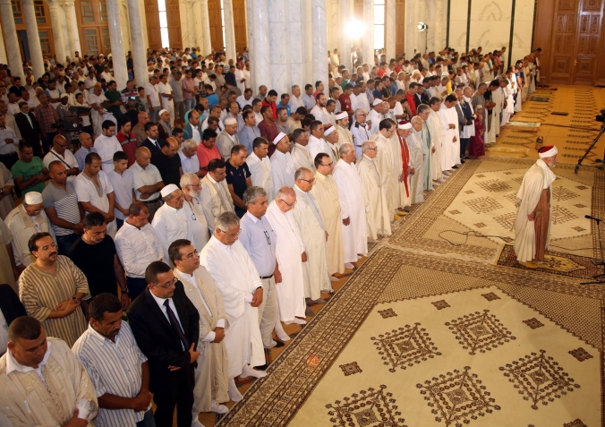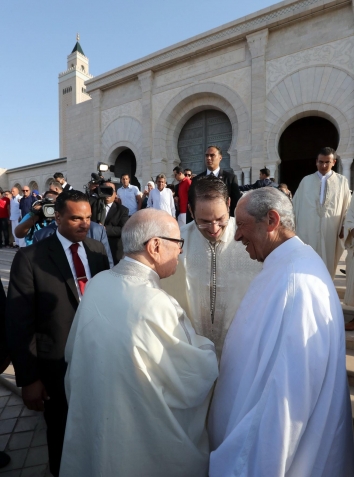 رئيس الجمهورية الباجي قايد السبسي يؤدي صلاة #عيد_الأضحى المبارك بجامع مالك بن أنس صباح يوم الجمعة غرة سبتمبر 2017 بحضور رئيس مجلس نواب الشعب محمد الناصر ورئيس الحكومة يوسف الشاهد.
