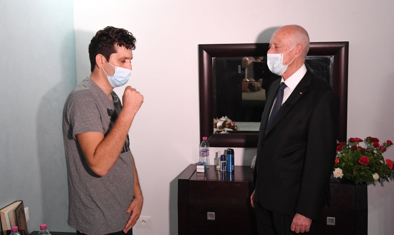 أدى رئيس الجمهورية قيس سعيد مساء الجمعة 25 سبتمبر 2020 زيارة إلى وكيل الحرس الوطني رامي الإمام بمدينة المكنين من ولاية المنستير للاطمئنان على صحته إثر مغادرته صباح اليوم المستشفى الجامعي سهلول بعد تماثله للشفاء.