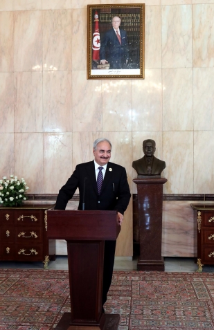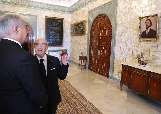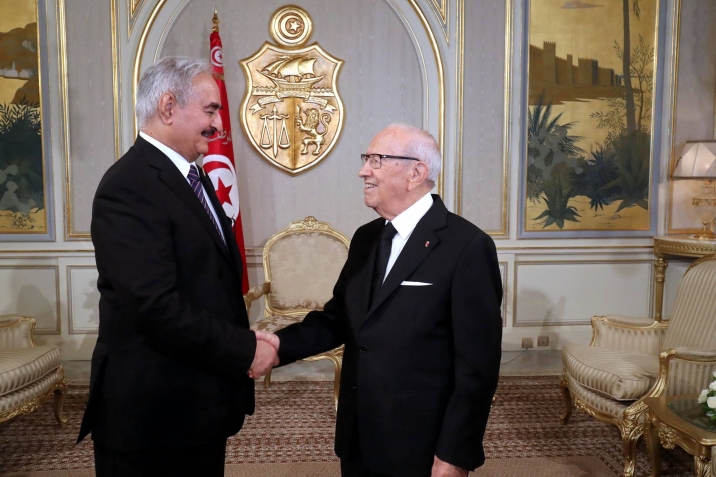 استقبل رئيس الجمهورية الباجي قايد السبسي، يوم الاثنين 18 سبتمبر 2017 بقصر قرطاج، المُشير خليفة حفتر في إطار الجهود التونسية المبذولة من أجل التقريب بن الفرقاء الليبيين وتشجيعهم على الحوار والتفاهم لإيجاد تسوية سياسية شاملة للأزمة في ليبيا.
