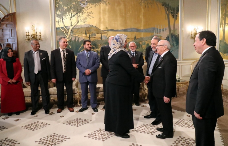 استقبل رئيس الجمهورية الباجي قايد السبسي، صباح يوم الخميس 23 فيفري 2017 بقصر قرطاج، عبد الرحمان السويحلي، رئيس المجلس الأعلى للدولة بليبيا والوفد المرافق الذي يؤدّي زيارة إلى تونس بدعوة من محمد الناصر، رئيس مجلس نواب الشعب.