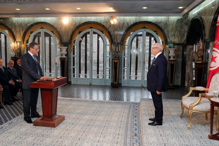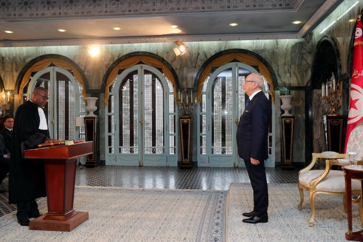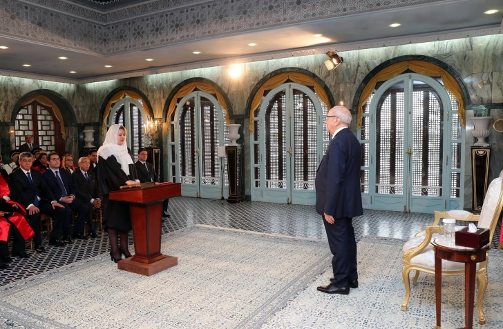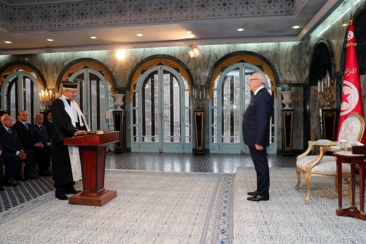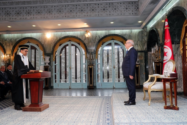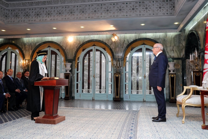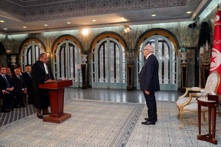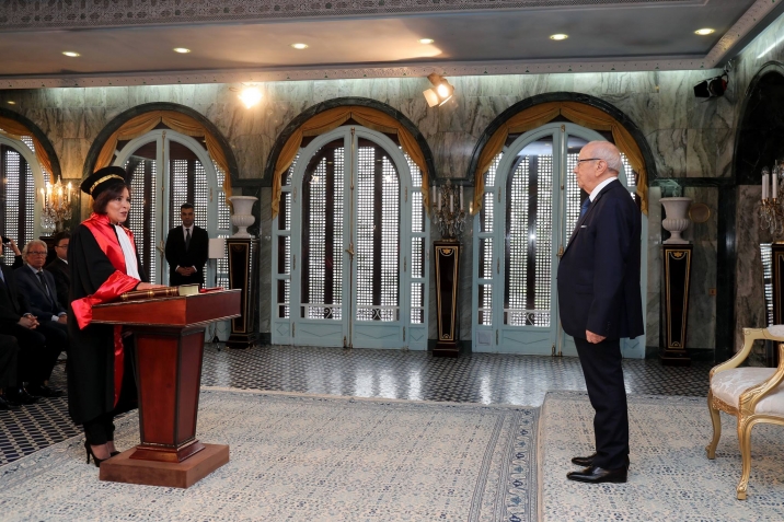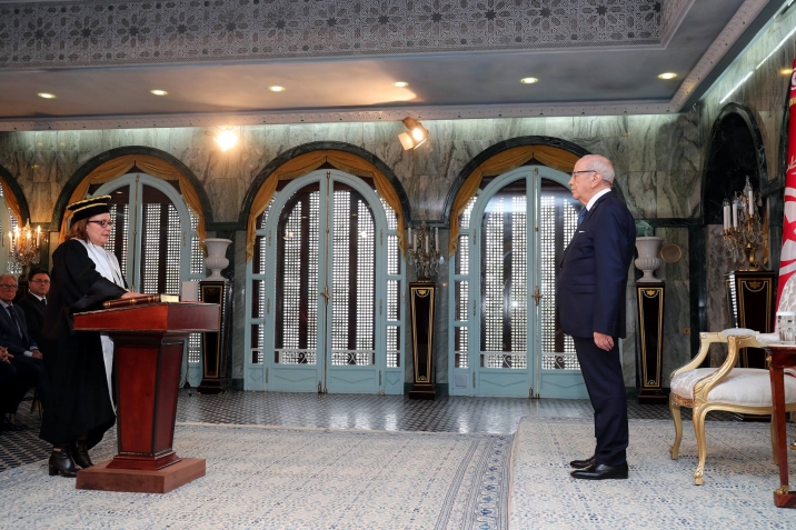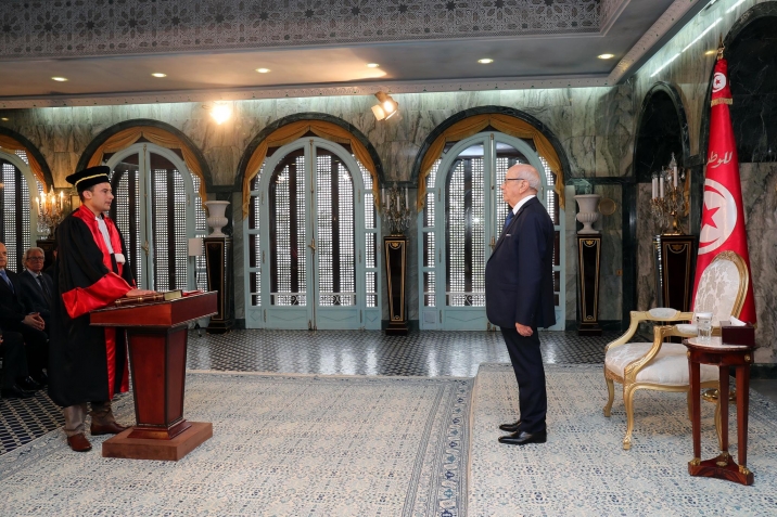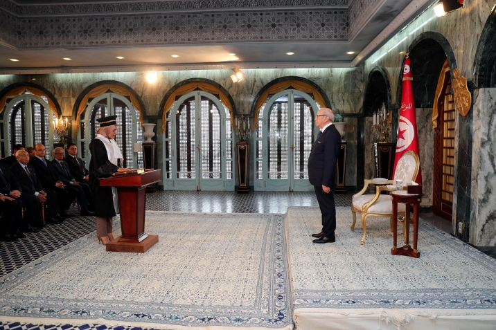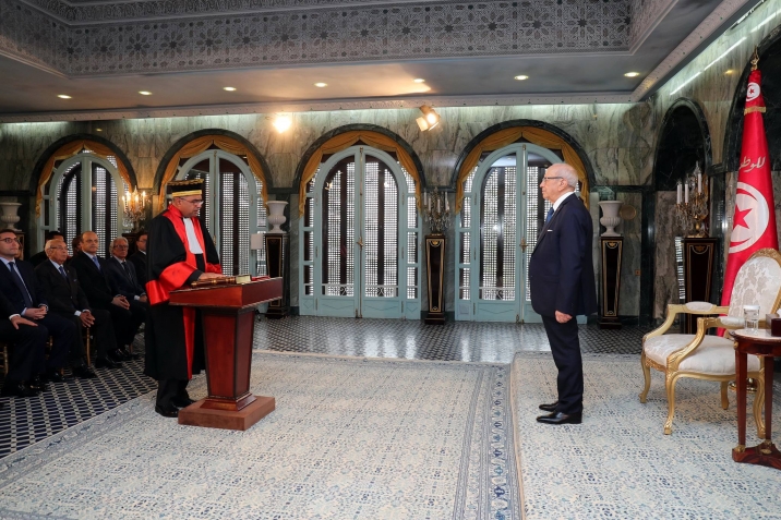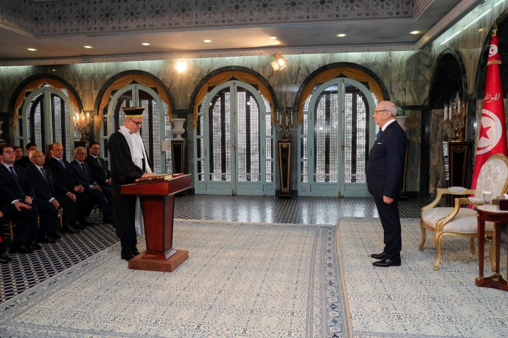 أشرف رئيس الجمهورية الباجي قايد السبسي اليوم الأربعاء 14 ديسمبر 2016 بقصر قرطاج على موكب أداء اليمين الدستورية لأعضاء المجلس الأعلى للقضاء، بحضور وزير العدل غازي الجريبي.