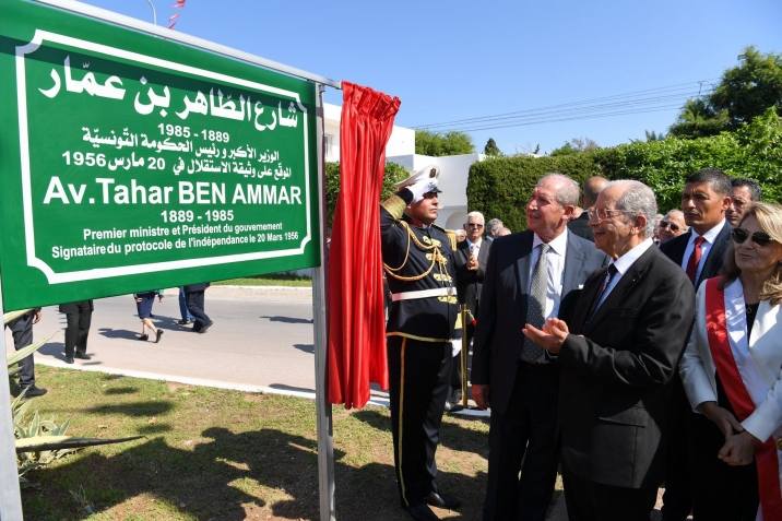 أشرف رئيس الجمهورية محمد الناصر يوم الاثنين 14 أكتوبر 2019 على موكب إزاحة الستار عن لوحة شارع " الطاهر بن عمار " بضاحية قرطاج أميلكار بحضور عائلة المرحوم الطاهر بن عمار وإطارات الجهة وأعضاء المجلس البلدي وعدد من الشخصيات الوطنية.