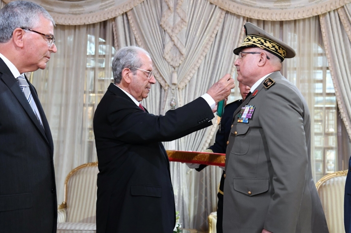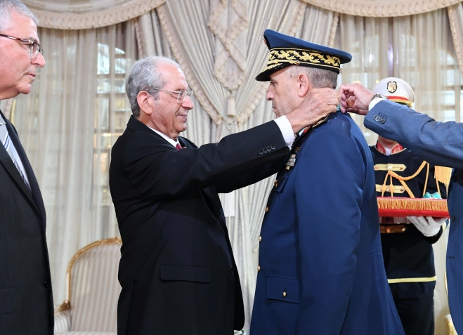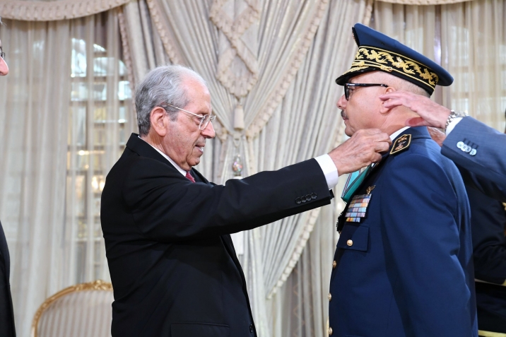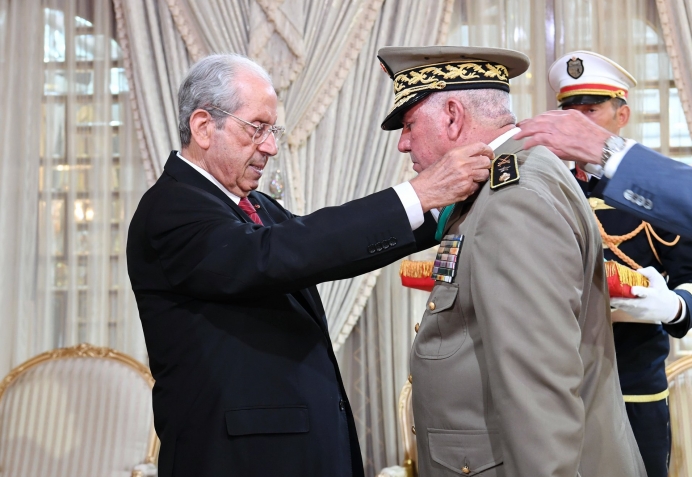 أشرف رئيس الجمهورية محمد الناصر، يوم الجمعة 02 أوت 2019 بقصر قرطاج، على موكب منح الصنف الثاني من وسام الجمهورية طبقا للأمر الرئاسي عدد 121 بتاريخ 24 جوان 2019، المصادف للذكرى 63 لانبعاث الجيش الوطني، لكلّ من :