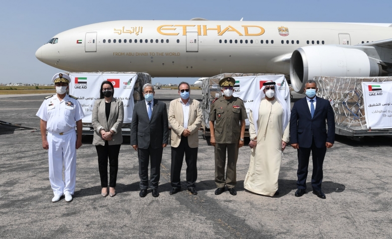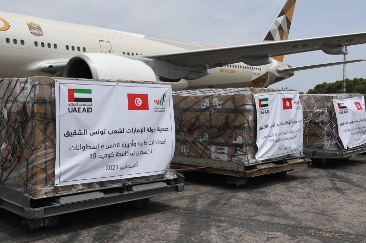 حلّت، ظهر اليوم الثلاثاء 3 أوت 2021 بمطار تونس قرطاج الدولي، طائرتان محملتان بكميات من الأكسجين وآلات تنفس اصطناعي ومكثفات أكسجين وتجهيزات للإنعاش والعناية المركّزة ممنوحة من قبل دولة الإمارات العربية المتّحدة لدعم جهود تونس في مواجهة جائحة كوفيد-19.