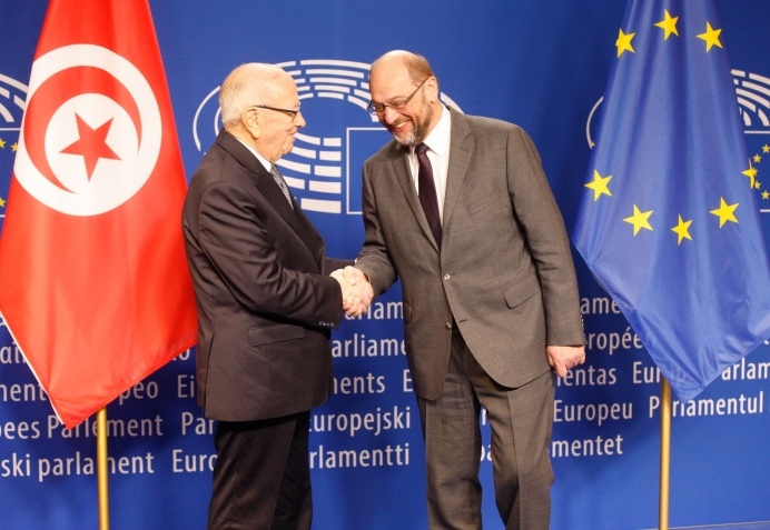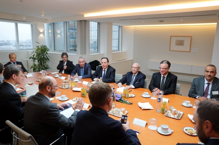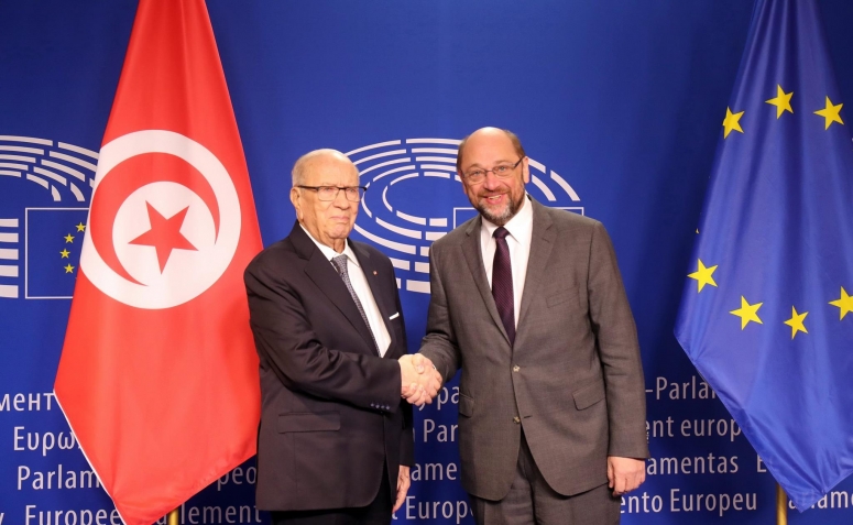 استقبال رئيس الجمهورية الباجي قايد السبسي صباح اليوم غرة ديسمبر 2016 من طرف رئيس البرلمان الأوروبي مارتن شولدز، في مستهل زيارة رئيس الدولة إلى مؤسسات الإتحاد الأروبي ببروكسال.
