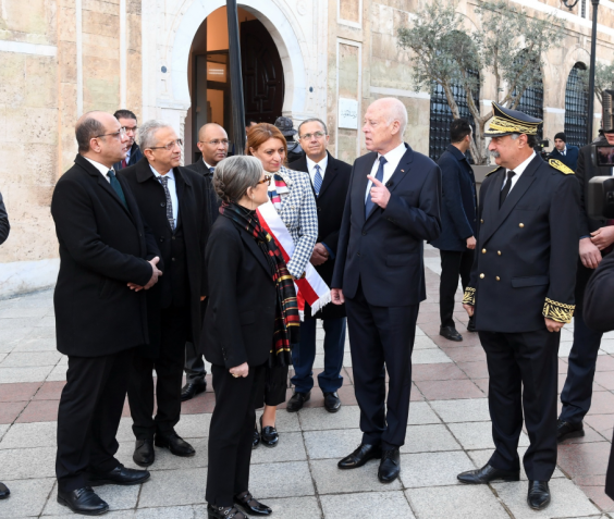 وتنقّل رئيس الدولة، إثر ذلك، رفقة السيّدة نجلاء بودن رمضان، رئيسة الحكومة، إلى قصر الحكومة بالقصبة حيث زار بعض مكونات هذا المبنى التاريخي واطلع على أبرز خصائصه المعمارية والحضارية.