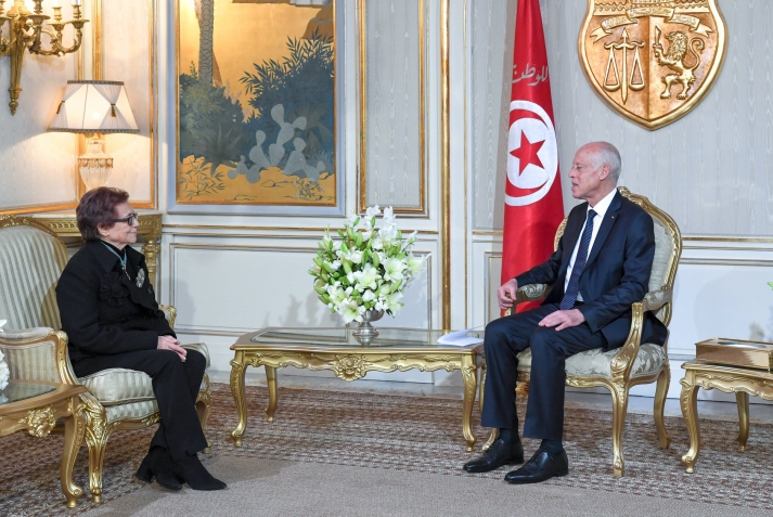 استقبل رئيس الجمهورية قيس سعيّد مساء الأربعاء 22 جانفي 2020 بقصر قرطاج المناضلة الجزائرية الكبيرة السيدة جميلة بوحيرد أحد أهم رموز الثورة الجزائرية.