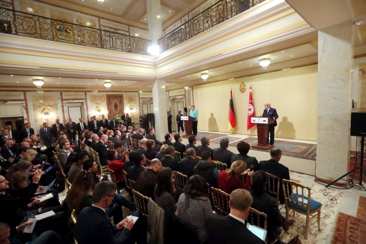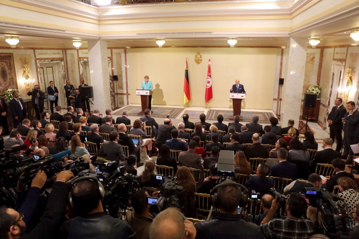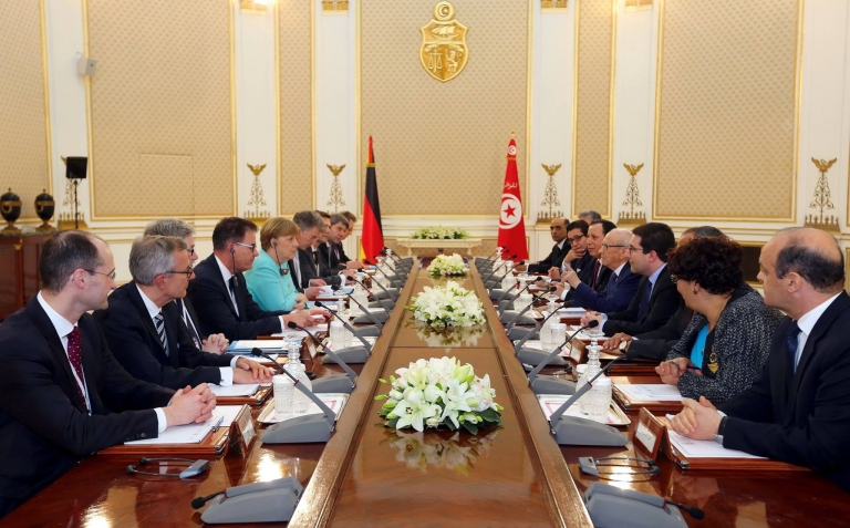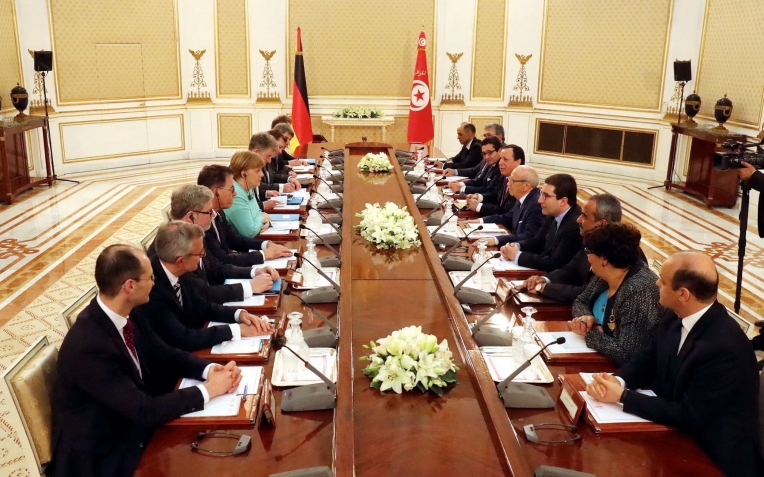 جلسة عمل بين الجانبين التونسي والألماني والندوة الصحفيّة المشتركة لرئيس الجمهورية الباجي قايد السبسي والمستشارة الفدرالية لجمهورية ألمانيا الاتحادية أنجيلا ميركل