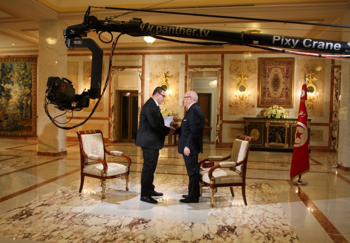 حوار لرئيس الجمهورية على القناة الوطنية الأولى في برنامج حديث الساعة مع إلياس الغربي