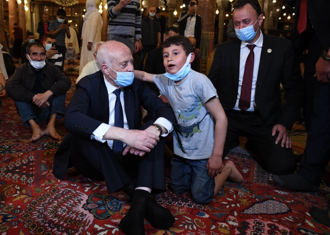وقد انتقل رئيس الدولة، إثر ذلك، مترجلا الى جامع الزيتونة المعمور أين أدى صلاة العشاء.