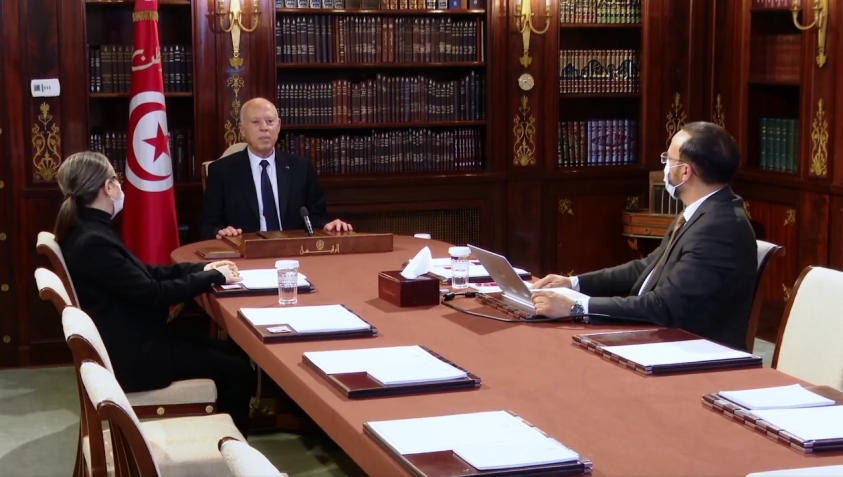 اجتماع رئيس الجمهورية قيس سعيد مع كل من السيد أحمد الحشاني، رئيس الحكومة، والسيدة والسادة ، وزير التربية، وزير التعليم العالي والبحث العلمي، وزير تكنولوجيات الاتصال، وزير الشؤون الدينية، وزيرة الأسرة والمرأة والطفولة وكبار السن