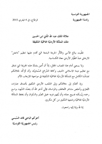 رسالة إلى جلالة الملك عبد االه الثاني ابن الحسين ملك المملكة الأردنية الهاشمية جريمة داعش في حق الطيار معاذ الكساسبة
