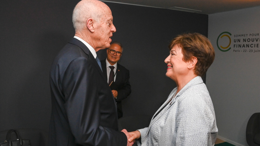 لقاء رئيس الجمهورية قيس سعيد مع السيدة كريستالينا غورغييفا، المديرة العامة لصندوق النقد الدولي