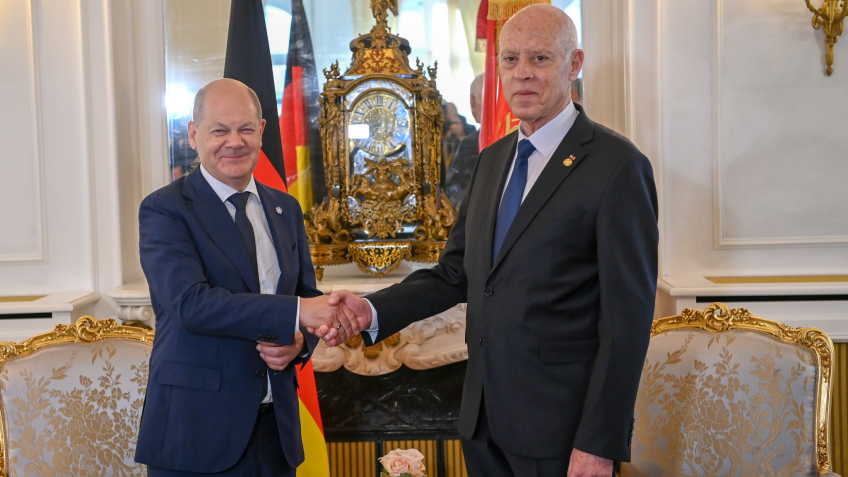 محادثة رئيس الجمهورية قيس سعيد مع المستشار الألماني السيد أولاف شولتز بمقر سفارة تونس بباريس