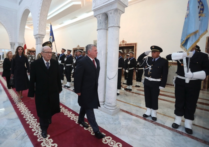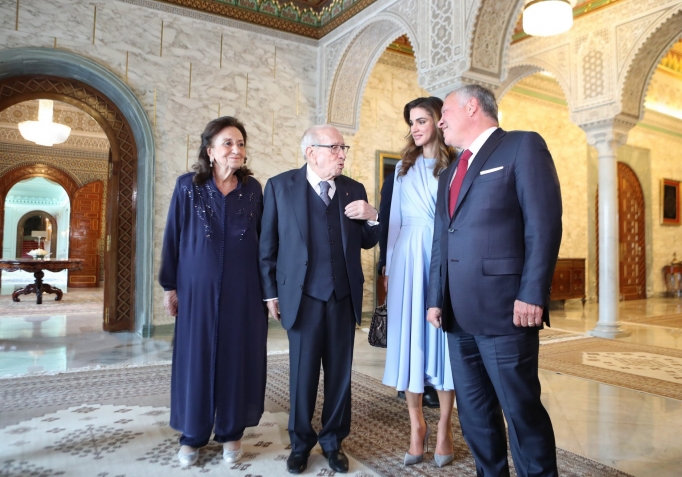 استقبل رئيس الجمهورية الباجي قايد السبسي بعد ظهر يوم الأحد 03 فيفري 2019 بالجناح الرئاسي بمطار تونس قرطاج الدولي، جلالة الملك عبد الله الثاني بن الحسين، ملك المملكة الأردنية الهاشمية، وقرينته جلالة الملكة رانيا العبد الله اللذين يؤديان زيارة رسمية إلى تونس بدعوة من رئيس الدولة.