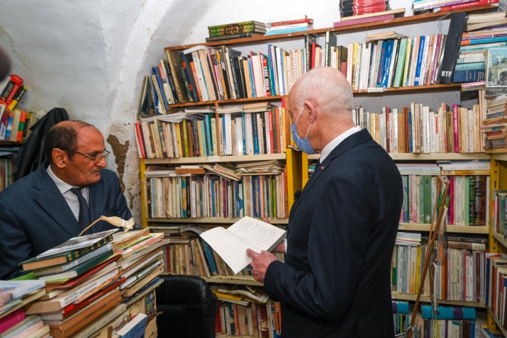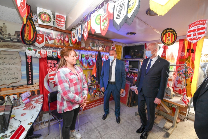 ثم ترجل رئيس الدولة في نهج الباشا حيث تحادث مع عدد من المواطنين واستمع إلى مشاغلهم وتطلعاتهم، كما زار بالمناسبة محلا لصنع أعلام الدول، وآخر لبيع الكتب القديمة.