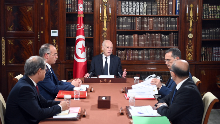 إشراف رئيس الجمهورية قيس سعيّد، على جلسة عمل حضرها كل من السادة كمال المدوري، رئيس الحكومة، وعز الدين بن الشيخ، وزير الفلاحة والموارد المائية والصيد البحري، وحامد الدالي، الرئيس المدير العام للديوان الوطني للزيت، ونبيل زروق، المدير العام المساعد لديوان ال