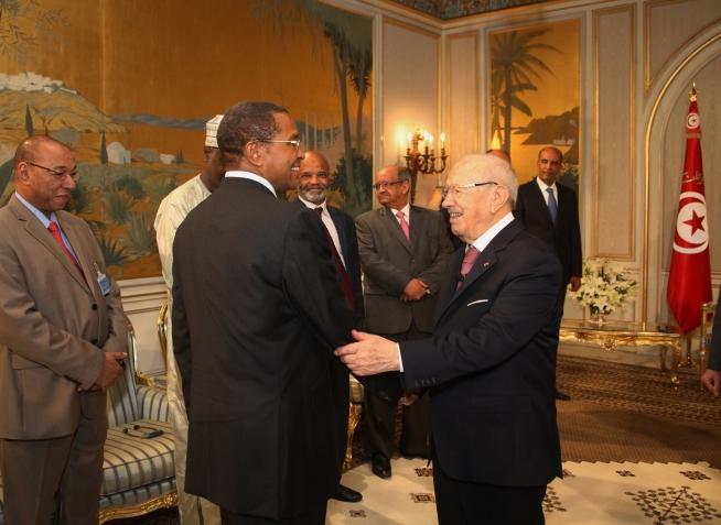 استقبل رئيس الجمهورية الباجي قايد السبسي صباح اليوم الثلاثاء 22 مارس 2016 بقصر قرطاج وزراء ورؤساء الوفود المشاركة في إجتماع دول جوار ليبيا الذي تحتضنه تونس يومي 21 و22 مارس 2016، وذلك بحضور وزير الشؤون الخارجية خميس الجهيناوي.