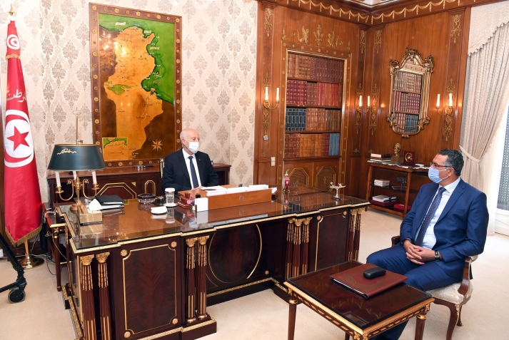 استقبل رئيس الجمهورية قيس سعيد اليوم الإثنين 31 أوت 2020 بقصر قرطاج وزير الدفاع الوطني في حكومة تصريف الأعمال السيد عماد الحزقي.