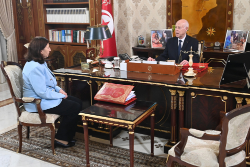 لقاء رئيس الجمهورية قيس سعيّد مع السيدة سارة الزعفراني الزنزري رئيسة الحكومة و السيدة مشكاة سلامة الخالدي وزيرة المالية و السيد سمير عبد الحفيظ وزير الإقتصاد والتخطيط