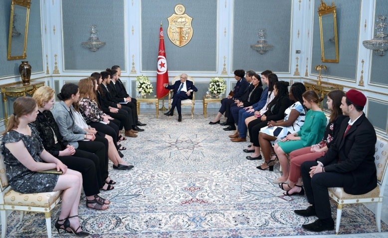 استقبل رئيس الجمهورية الباجي قايد السبسي يوم الخميس 16 ماي 2019 بقصر قرطاج وفدا طلابيا من جامعة أوتاوا الكندية.