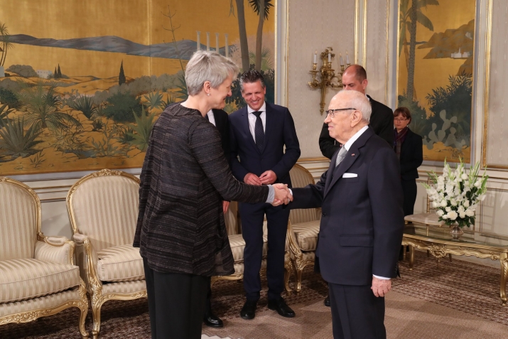 استقبل رئيس الجمهورية الباجي قايد السبسي يوم الخميس 03 ماي 2018 بقصر قرطاج وفدا عن المؤسسة الألمانية "كونراد اديناور" Konrad-Adenauer يتقدمهم السيد جيرارد والرز Gerhard Wahlers، الأمين العام المساعد للمؤسسة التي تعقد مؤتمرها الإقليمي السنوي لمنطقة الشرق الأوسط وشمال إفريقيا بتونس من 2 إلى 04 ماي الجاري.