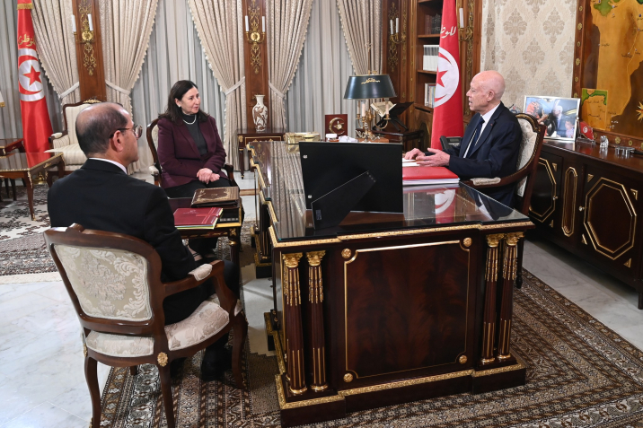 لقاء رئيس الجمهوريّة قيس سعيّد مع السيدة سارة الزعفراني الزنزري رئيسة الحكومة والسيد صلاح الزواري وزير التجهيز والإسكان