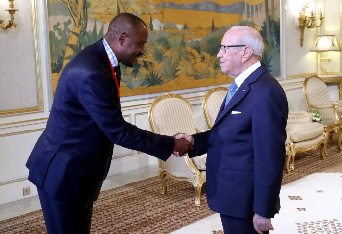 استقبل رئيس الجمهورية الباجي قايد السبسي، يوم الأربعاء 23 أوت 2017 بقصر قرطاج، ثلة من الوزراء وكتاب الدولة للتعليم العالي والتكوين المهني من عدد من الدول الافريقية المشاركة في فعاليات "المنتدى التونسي الافريقي للتمكين" الذي تحتضنه تونس يومي 22 و23 أوت الجاري (مالي- النيجر- تشاد- بوركينا فاسو- جيبوتي- الغابون- غينيا كوناكري- الكونغو الديمقراطية).
