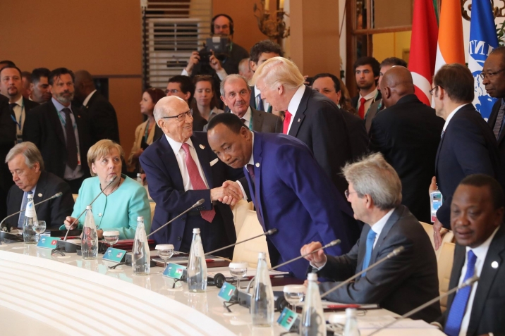 وكان لرئيس الجمهورية عدة لقاءات ومباحثات على هامش أشغال قمة مجموعة الدول السبع الكبار (G7) مع كل من الرئيس الفرنسي ايمانويل ماكرون والمستشارة الألمانيّة أنغيلا ميركل والامين العام للأمم المتحدة أنطونيو غوتيريس ورئيس الاتحاد الافريقي ألفا كوندي