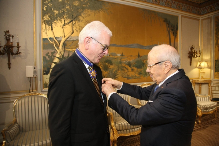 تولى رئيس الجمهورية الباجي قايد السبسي اليوم الإثنين غرّة فيفري 2016 منح السيد هانس غيرت بوترينغ Hans- Gert Pöttering رئيس مؤسسة "كونراد أديناور" الصنف الأول من الوسام الوطني للإستحقاق في قطاع العمل التطوعي والتضامني، وذلك تقديرا لمجهوداته في دعم أواصر الصداقة والتعاون بين تونس وألمانيا.