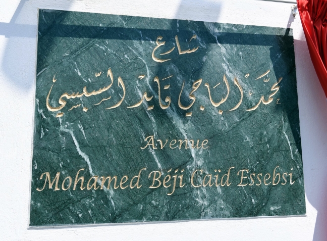 بمناسبة أربعينية الرئيس الراحل الباجي قايد السبسي، أشرف رئيس الجمهورية محمد الناصر يوم الخميس 05 سبتمبر 2019 على موكب إزاحة الستار عن لوحة شارع محمد الباجي قايد السبسي بمنطقة قرطاج، بحضور عائلة الفقيد وإطارات الجهة وأعضاء المجلس البلدي وثلّة من الشخصيات الوطنيّة.