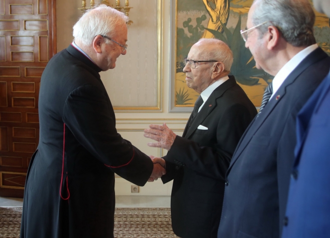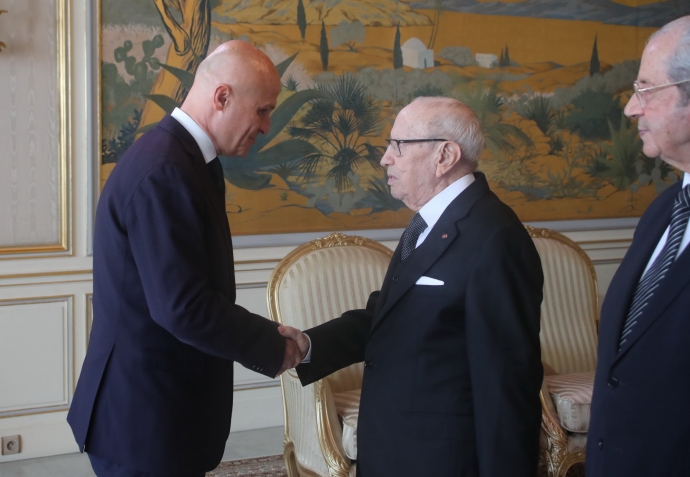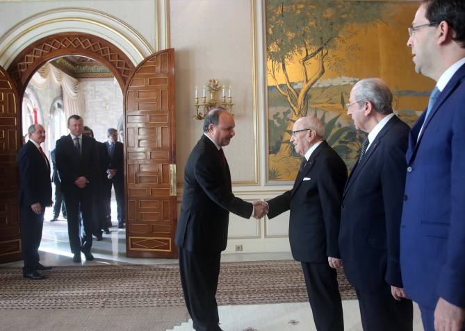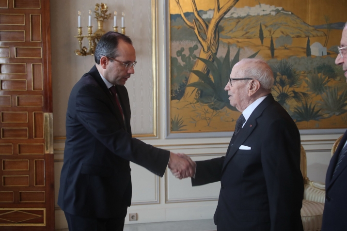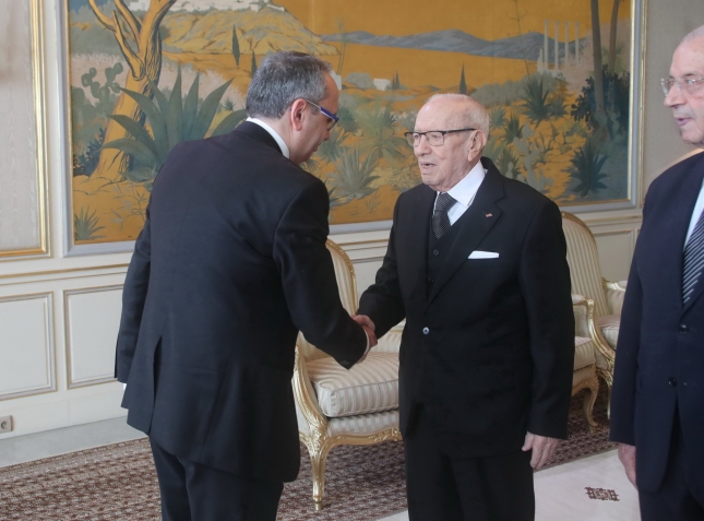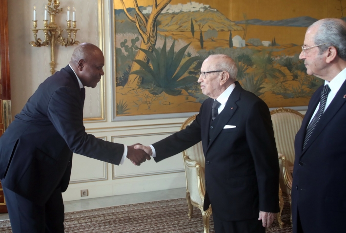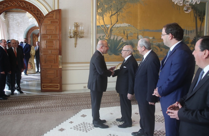 أشرف رئيس الجمهورية الباجي قايد السبسي، يوم الخميس 24 جانفي 2019 بقصر قرطاج، على موكب التهاني بمناسبة السنة الجديدة 2019.