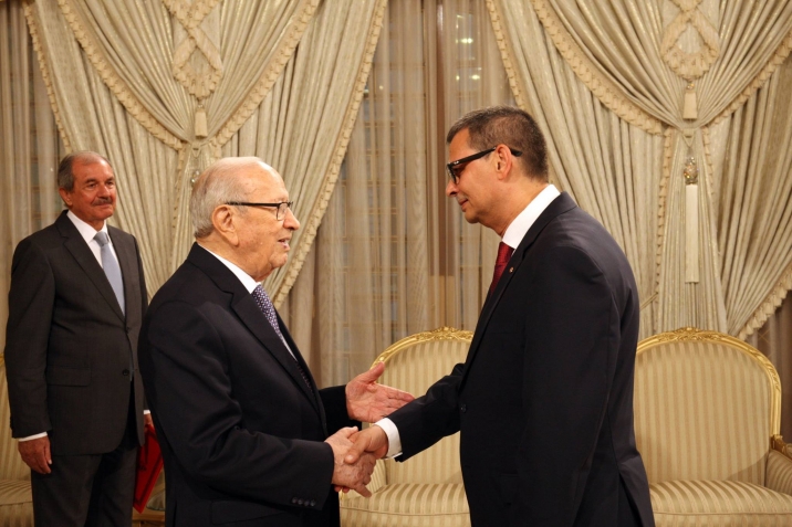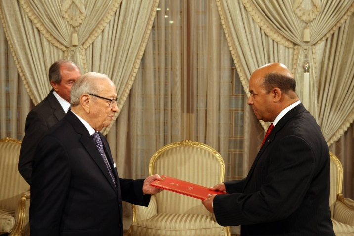 أشرف رئيس الجمهورية الباجي قايد السبسي اليوم الخميس 06 أكتوبر 2016 بقصر قرطاج على موكب تسليم أوراق اعتماد سبعة سفراء جدد لتونس وهم على التوالي: