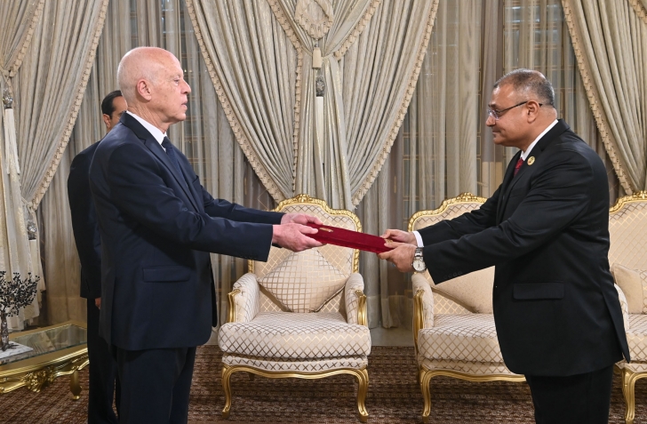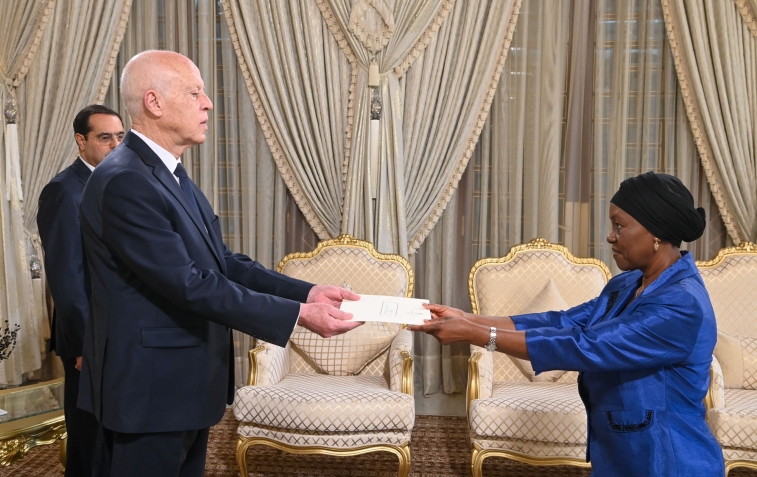 أشرف رئيس الجمهورية قيس سعيّد، اليوم الجمعة 12 جويلية 2024 بقصر قرطاج، على موكب تسلّم أوراق اعتماد سفراء أجانب جدد بتونس وهم على التوالي :
