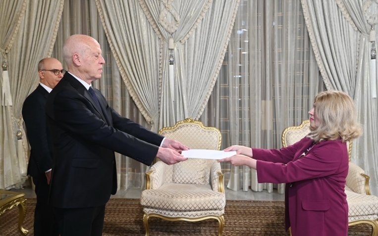 أشرف رئيس الجمهورية قيس سعيّد، صباح اليوم الاربعاء 10 جانفي 2024 بقصر قرطاج، على موكب تسلّم أوراق اعتماد السفراء الجدد المعتمدين بتونس وهم على التوالي :