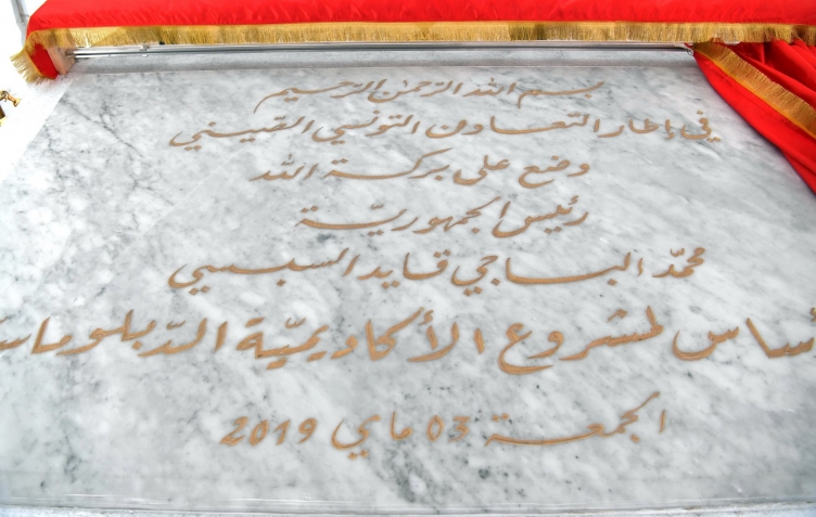 أشرف رئيس الجمهورية الباجي قايد السبسي يوم الجمعة 03 ماي 2019 الموافق لليوم الوطني للديبلوماسية التونسيّة، على موكب وضع حجر الأساس للأكاديمية الديبلوماسية بمنطقة رأس الطابية بتونس العاصمة.