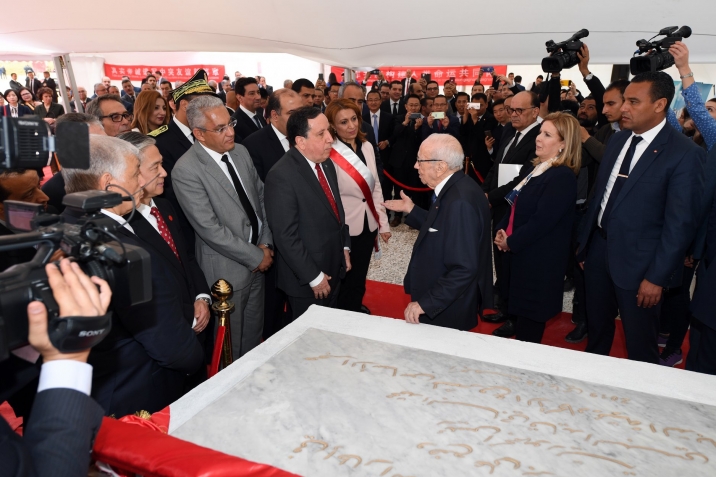 واطّلع رئيس الدولة رفقة وزير الخارجية خميس الجهيناوي على لوحات بيانيّة حول المشروع الذي سينجز في إطار التعاون التونسي الصيني بهبة صينيّة بأكثر من 72 مليون دينار.