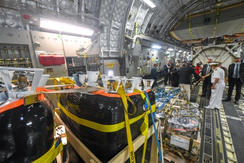 وقد تم تسلم هذه المعدات والمستلزمات الطبية بحضور السيّد نادية عكاشة، الوزيرة مديرة الديوان الرئاسي، والسيّد عثمان الجرندي، وزير الشؤون الخارجية والهجرة والتونسيين بالخارج، والسيّد محمّد الطرابلسي، وزير الصحّة بالنيابة، والفريق بالبحرية عبد الرؤوف عطاء الله، المستشار أول لدى رئيس الجمهورية المكلف بالأمن القومي، والفريق طبيب مصطفى الفرجاني، المدير العام للصحة العسكرية، وسعادة السيّد راشد المنصوري، سفير دولة الإمارات العربية المتحدة بتونس.