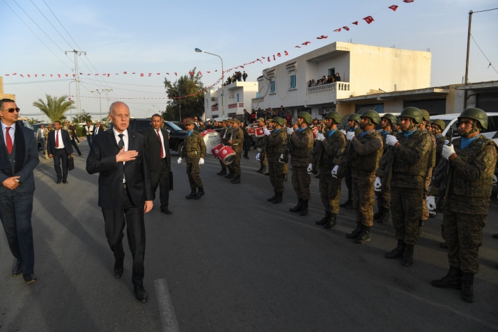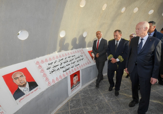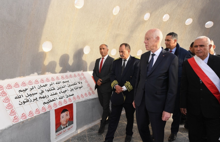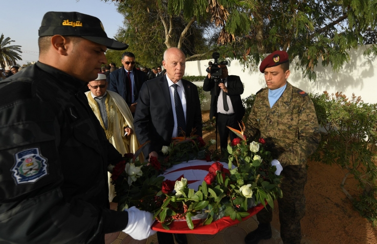 وتحول رئيس الدولة إثر ذلك إلى مقبرة الشهداء حيث تلا فاتحة الكتاب ترحما على أرواح أبطال تونس.